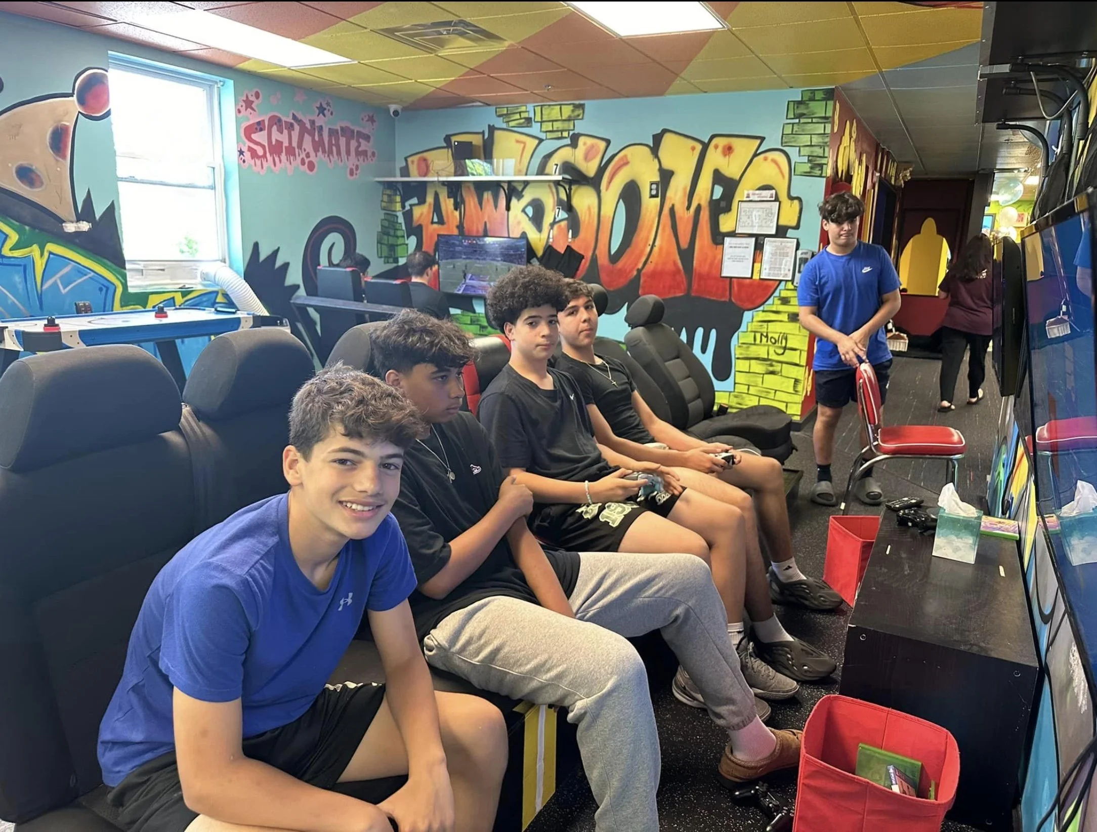 Our venue offers a vibrant 50's style diner, a dance room for groovy moves, a game room filled with excitement, and a gaming room featuring 9 Xbox consoles for endless fun. Dive into cinematic adventures in our movie room, explore a variety of board games in our library room, or let the little ones enjoy our infant soft play area and young preschool play zone.